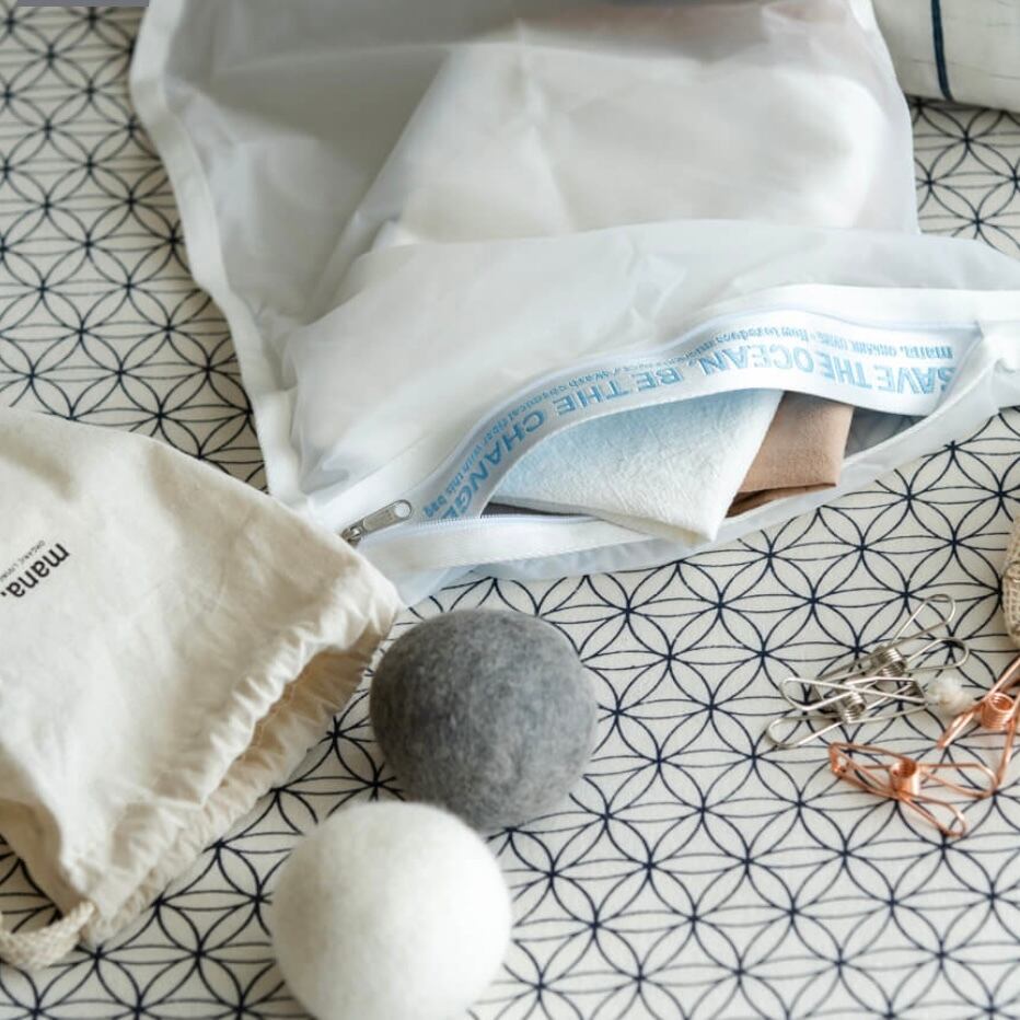 【「海」を守りながら、おしゃれも楽しみたい】あなたへ。mana.の洗濯ネットなら、マイクロプラスチックの原因となるマイクロプラスチックファイバーをキャッチして、海への流出を防ぎます。